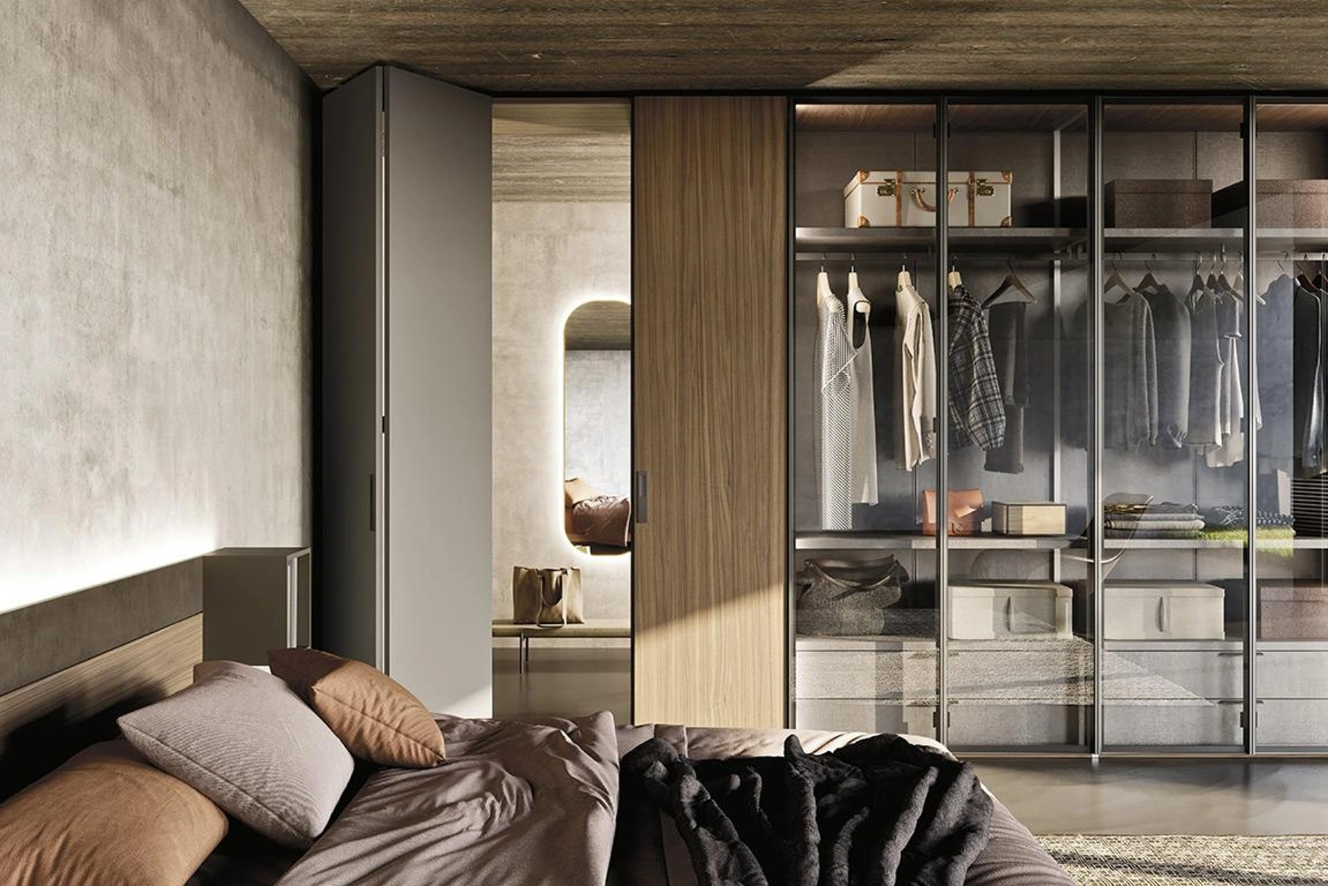 Armadio con ante a soffietto Comp N06A di Mobilgam in vetro: in un ricco catalogo di mobili ed elementi accessori, questo modello ti farà ultimare la tua camera da letto come l'hai sempre sognata. Visitarci vuole dire vedere dal vivo diverse soluzioni del noto e conosciuto marchio, sempre di alto contenuto estetico. Una ampia offerta di arredi in vetro come questo guardaroba con ante a soffietto nella fotografia. Qualità e comfort sono gli ingredienti che, unitamente a un elevato contenuto estetico, connotano tutti gli Armadi a muro design della firma Mobilgam. Se vuoi creare una stanza bella e funzionale, compila il form o visitaci per ottenere infromazioni, consigli e idee nell'ambito dell'Arredamento Casa.
