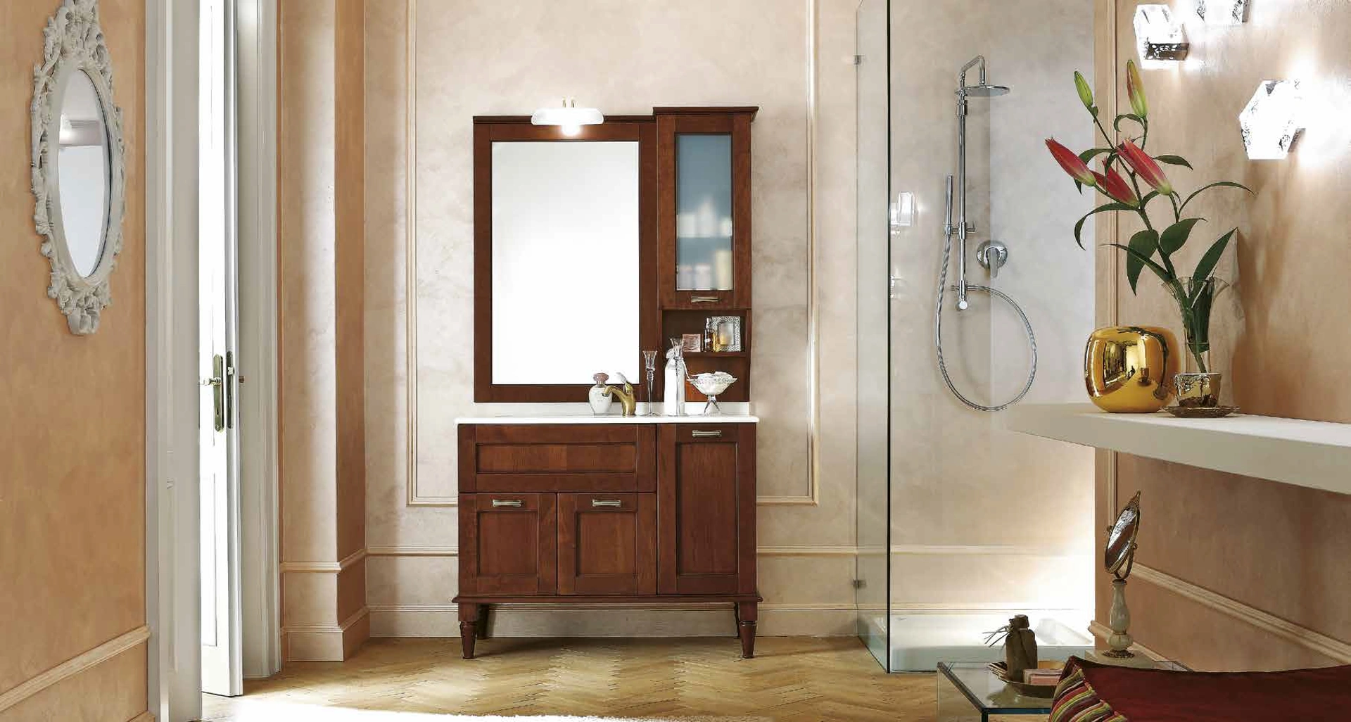 Il modello Mobile da Bagno Accademia 14 di Puntotre in legno appartiene alla completa serie di mobili per la sala da bagno dell'azienda, sempre di grande valore estetico. In showroom potrai toccare con mano le più belle composizioni del noto e conosciuto marchio: ti aspettiamo per arredare insieme il bagno di casa. Materiali tecnici e una ricca palette cromatica garantiscono una personalizzazione fin nel dettaglio e materiali pregiati resistenti a differenti sostanze. Esteticamente apprezzabile e indispensabile in ogni stanza da bagno, un modello in legno classico come quello nella fotografia risolverà le tue esigenze abitative di ogni genere. Puntotre produce proposte per l’Arredo Bagno classico con mobili bagno a terra che coniugano design unico e funzionalità, come tale ambiente vuole.
